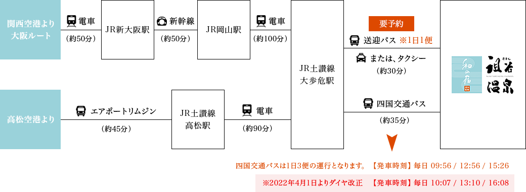 当ホテルではJR大歩危駅までの送迎が1日1便ございます